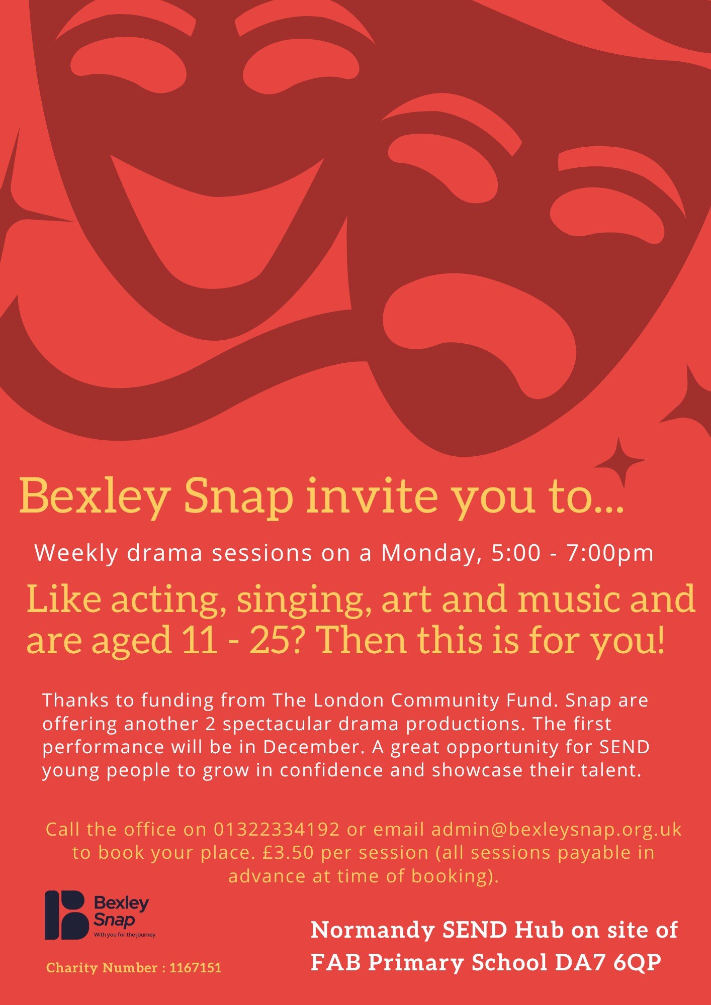 Thanks to funding from the London Community Fund, Snap will be offering 3 spectacular drama productions over the next 2 years.